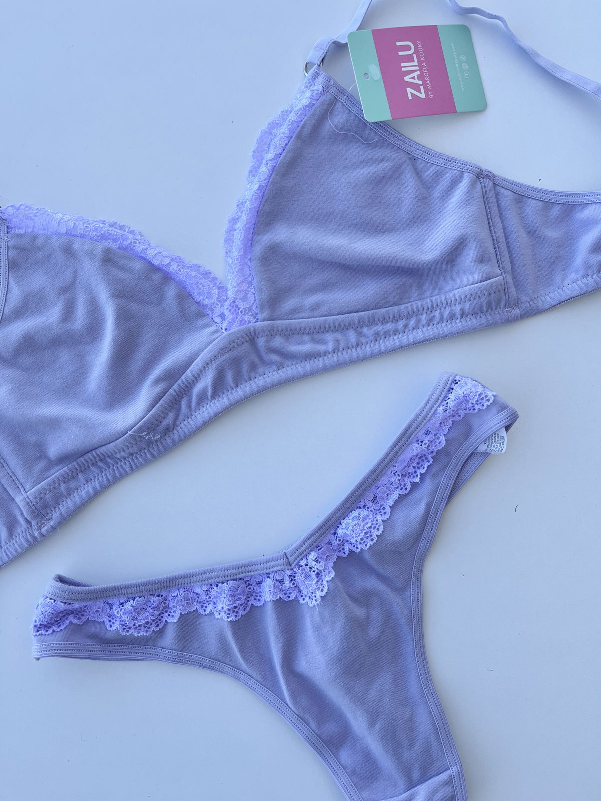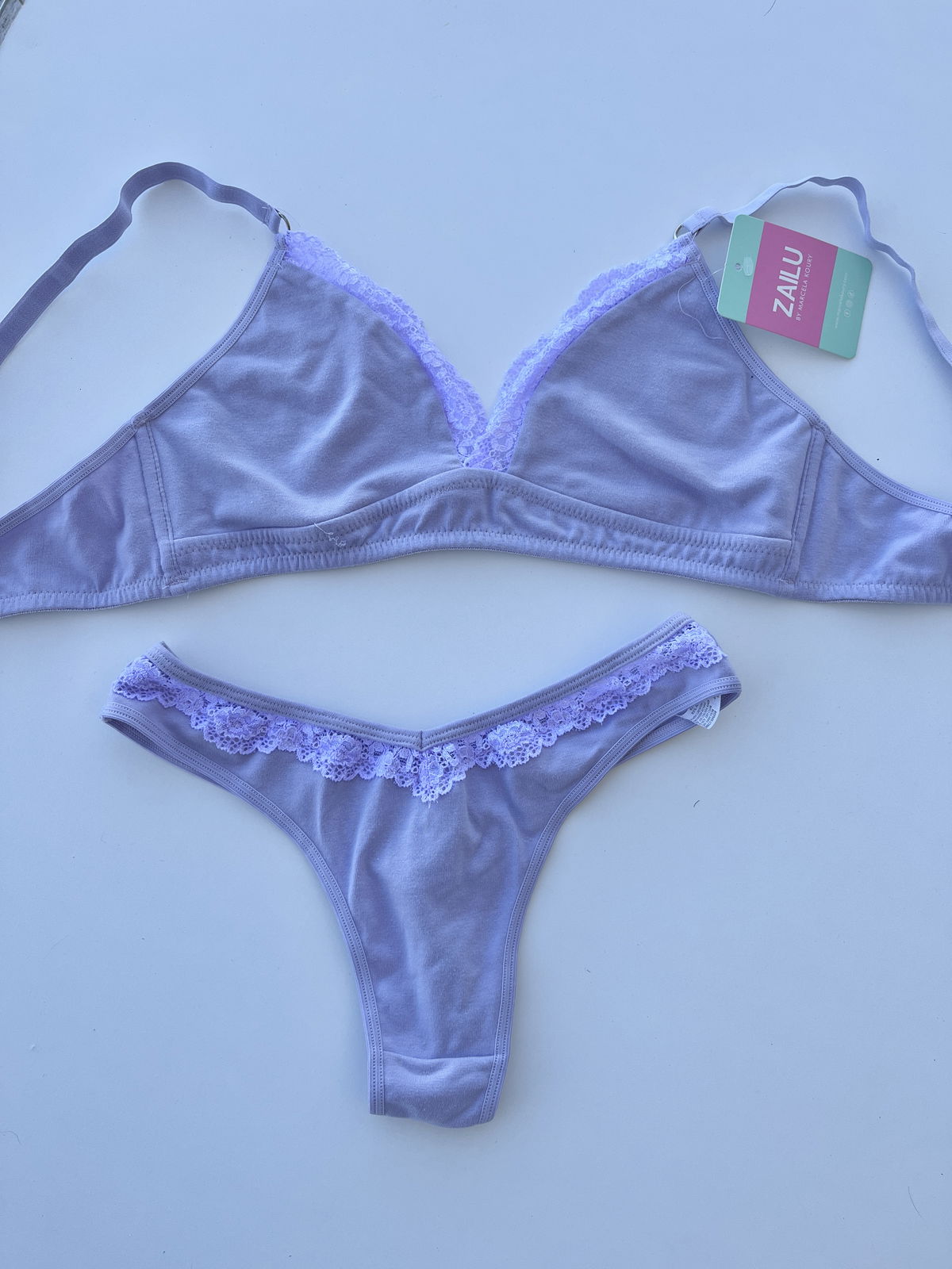 Conjunto de algodón, triangulito sin push up y colaless.