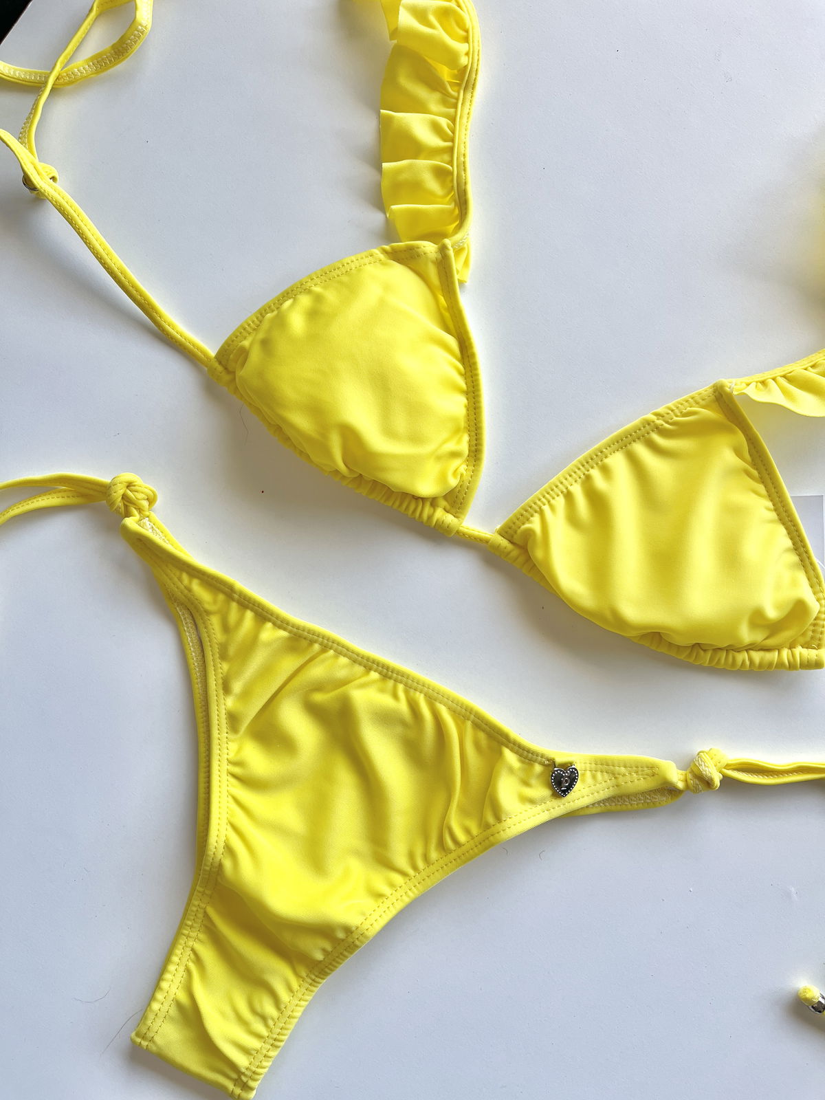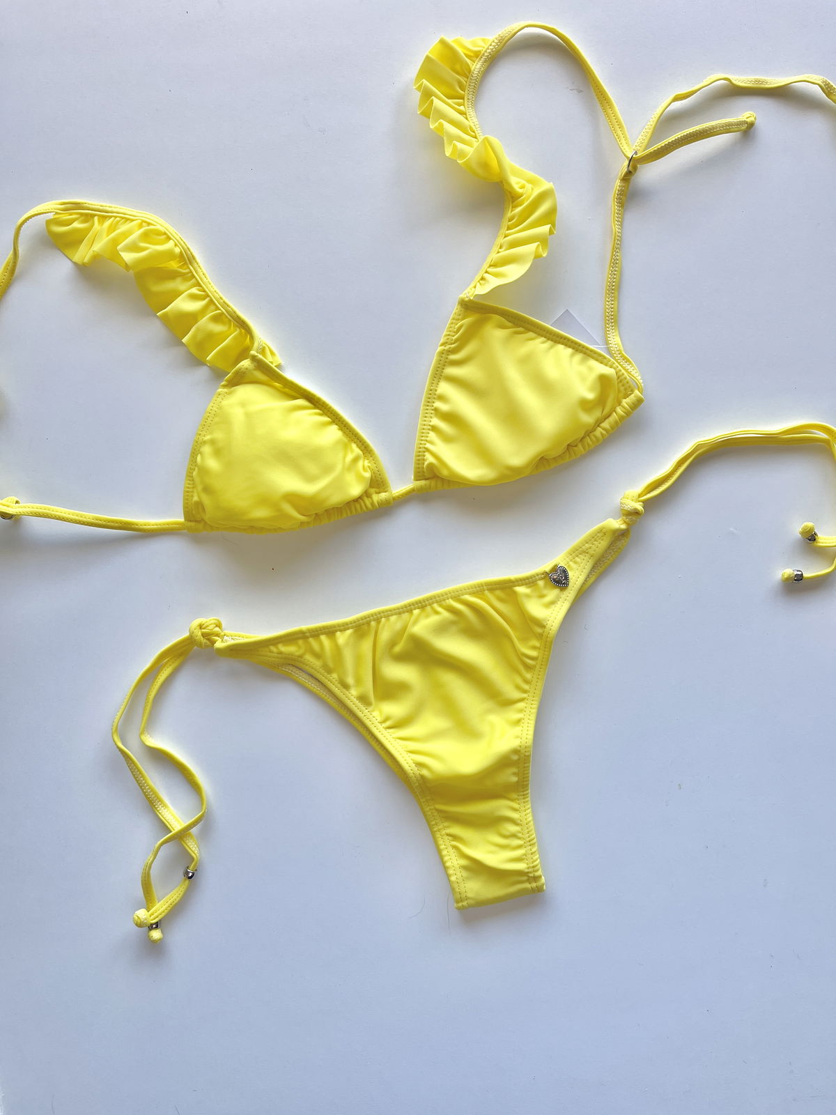 Conjunto de triangulito con almohadillas con boladitos en breteles y semi-vedetina para atar.