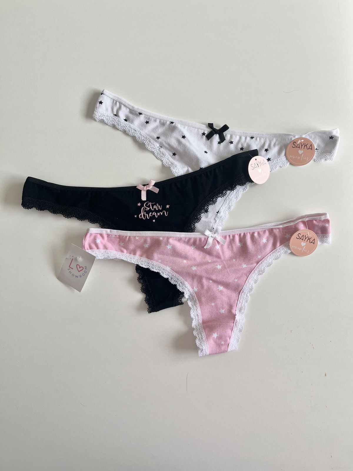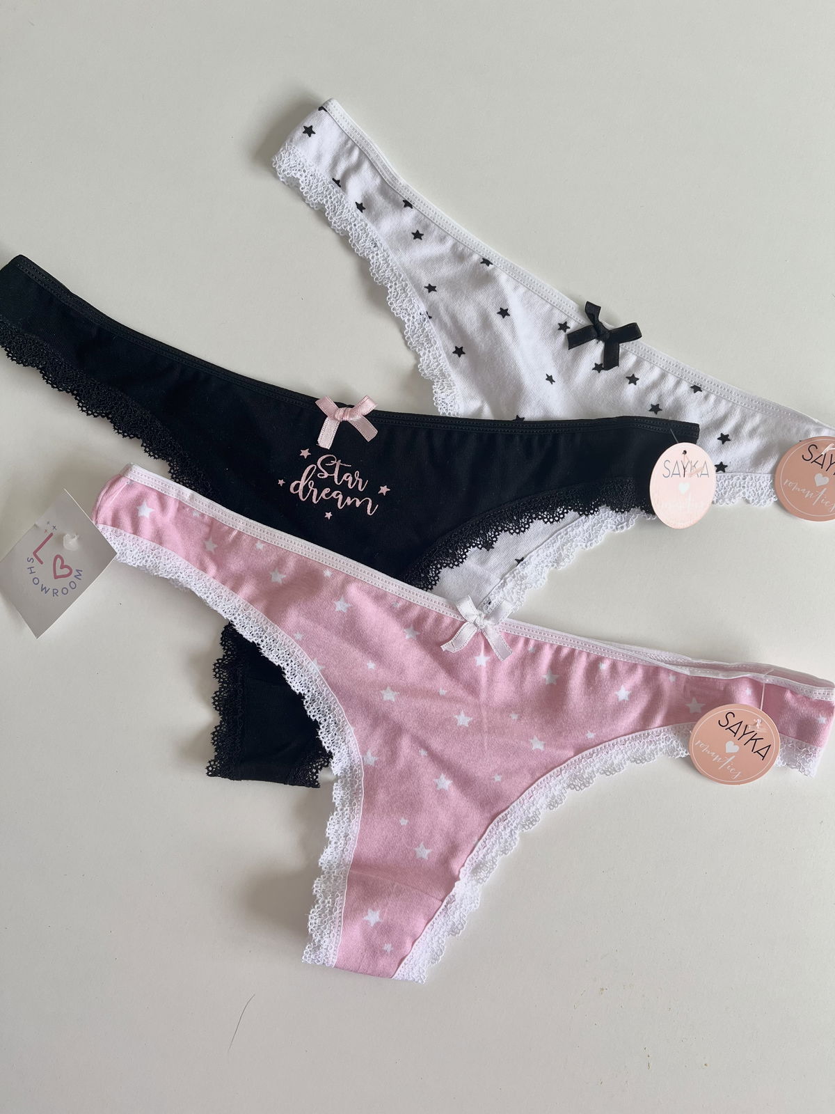 Pack x 3 colaless de algodón estampado.